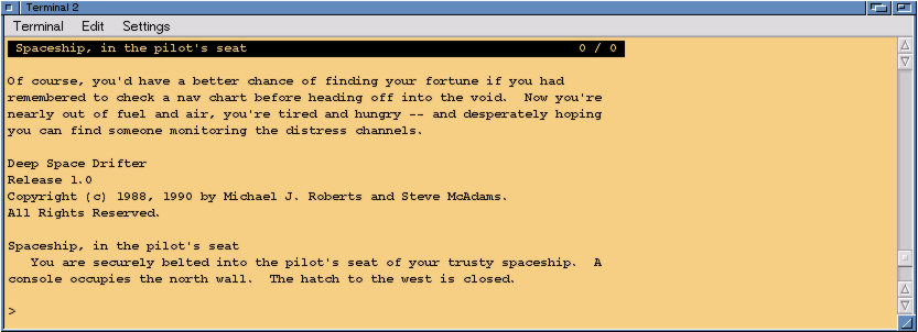 TADS for BeOS, running Deep Space Drifter. This