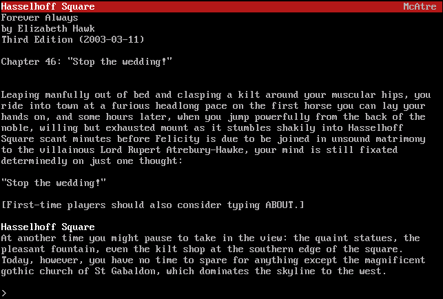 TADS for MS-DOS (in a DOS box on Windows ME), running
